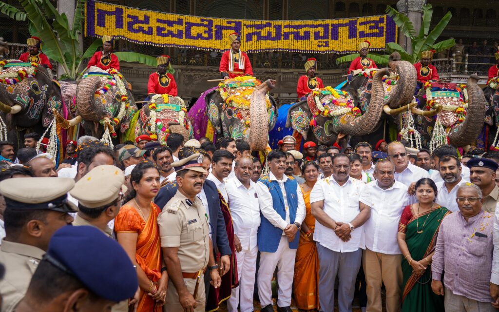 ದಸರಾ ಗಜಪಡೆಗೆ ಪುಷ್ಪಾರ್ಚನೆ ಸಲ್ಲಿಸಿ ಸ್ವಾಗತಿಸಿದ ಸಚಿವ ಡಾ.ಹೆಚ್.ಸಿ.ಮಹದೇವಪ್ಪ