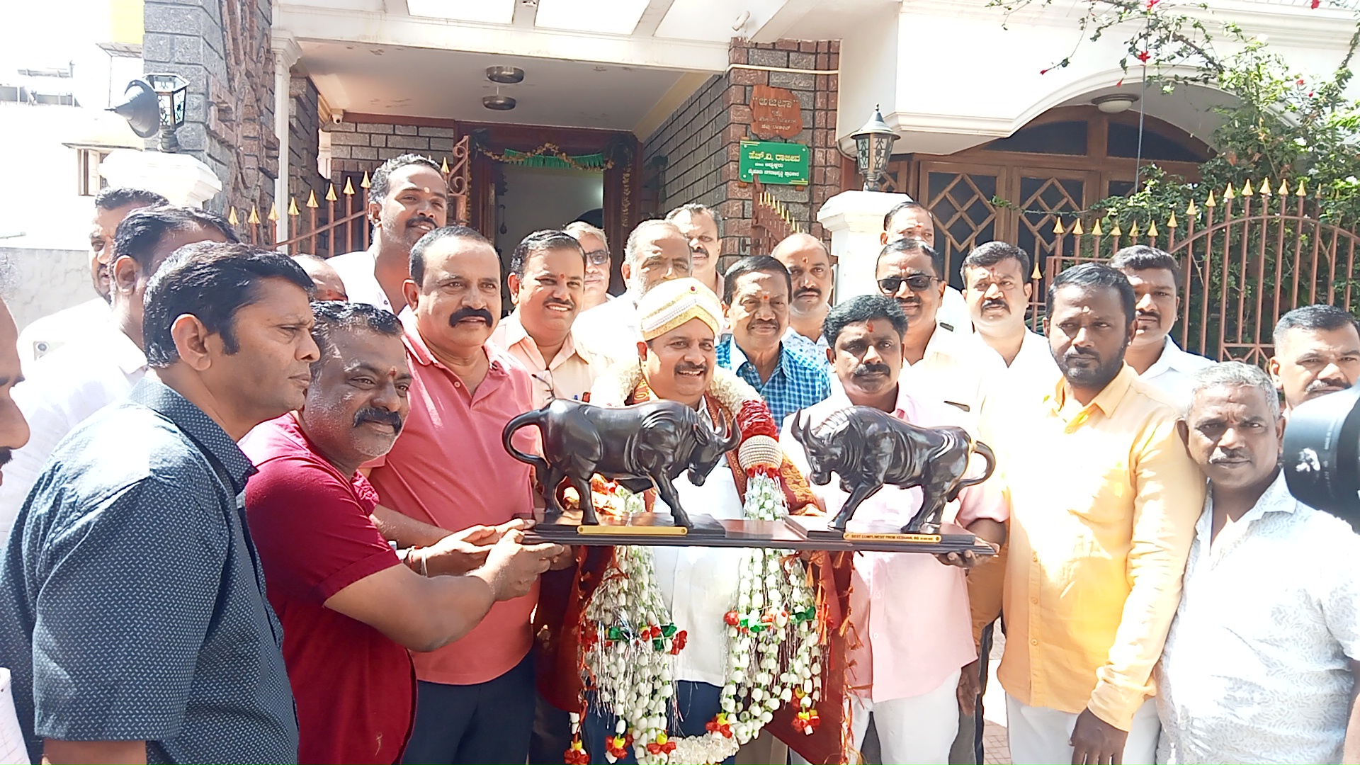 ಎಚ್.ವಿ.ರಾಜೀವ್ ನಿವಾಸದ ಬಳಿ ಕೇಕ್ ಕತ್ತರಿಸಿ ವಿಜಯದ ಸಂಕೇತ ಎರಡು ಗೂಳಿಗಳು (ಬುಲ್ಸ್ ಗಳು) ಸಂಘರ್ಷಕ್ಕಿಳಿದಿರುವ ಉಡುಗೊರೆಯೊಂದನ್ನ ನೀಡಿ ಮುಂದಿನ ದಿನಗಳಲ್ಲಿ ಶಾಸಕರಾಗಿ ಬರಲಿ ಎಂದು ಅಭಿಮಾನಿಗಳು ಶುಭ ಹಾರೈಸಿದರು.