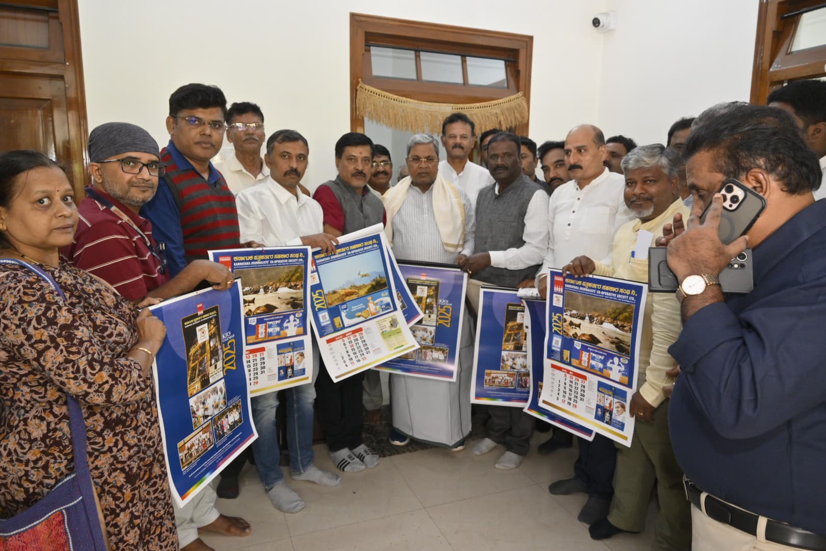 ಬೆಂಗಳೂರು, ಜ.14: ಕರ್ನಾಟಕ ಪತ್ರಕರ್ತರ ಸಹಕಾರ ಸಂಘದ ವಿಶಿಷ್ಟವಾಗಿ ಹೊರತಂದಿರುವ 2025ರ ಕ್ಯಾಲೆಂಡರ್ ನ್ನು ಮುಖ್ಯಮಂತ್ರಿ ಸಿದ್ದರಾಮಯ್ಯ ಅವರು ಸಂಕ್ರಾಂತಿ ಹಬ್ಬದ ದಿನದಂದು ಬೆಂಗಳೂರಿನಲ್ಲಿ ಬಿಡುಗಡೆ ಮಾಡಿದರು.